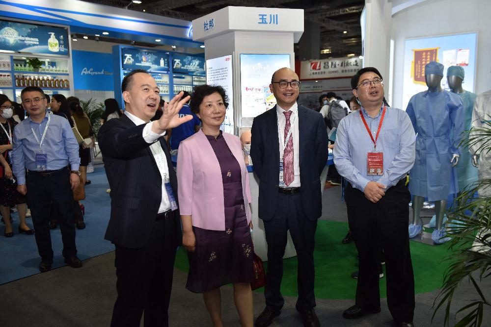 7月16日,上海市發(fā)展改革委黨組副書(shū)記、市糧食物資儲(chǔ)備局局長(zhǎng)殷歐,市糧食物資儲(chǔ)備局副局長(zhǎng)殷飛等一行來(lái)到上藥控股的展臺(tái)進(jìn)行參觀。
