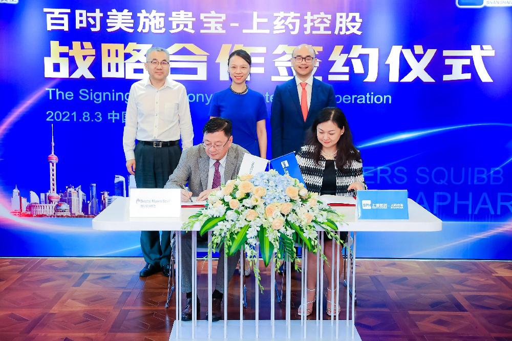 8月3日,在上海自由貿(mào)易試驗(yàn)區(qū)臨港新片區(qū)管委會(huì)專職副主任武偉的見證下,百時(shí)美施貴寶和上藥控股在上海舉行了隆重的戰(zhàn)略合作簽約儀式。百時(shí)美施貴寶中國大陸及香港地區(qū)總經(jīng)理陳思淵、高級(jí)副總裁及成熟產(chǎn)品業(yè)務(wù)及商業(yè)運(yùn)作管理負(fù)責(zé)人傅旭東、副總裁及中國和亞洲區(qū)財(cái)務(wù)部兼行政部負(fù)責(zé)人李平及施貴寶管理團(tuán)隊(duì);上海醫(yī)藥執(zhí)行董事、副總裁、上藥控股總經(jīng)理李永忠,上藥控股副總經(jīng)理宋潞潞等共同參與簽約儀式。