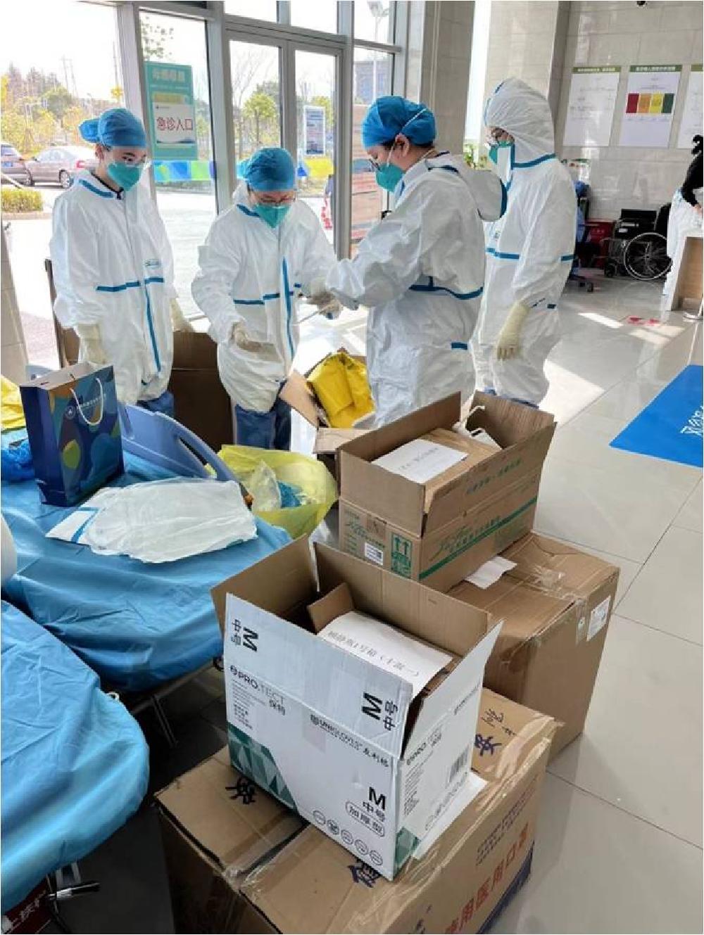 除了金山公衛(wèi)中心的SPD團隊,對口安亭、仁濟南、龍華、市一南、胸科醫(yī)院、龍華、兒中心、市一北醫(yī)院等SPD團隊都堅持主動服務各科室,與廣大醫(yī)護人員同心戰(zhàn)疫,共守家園。