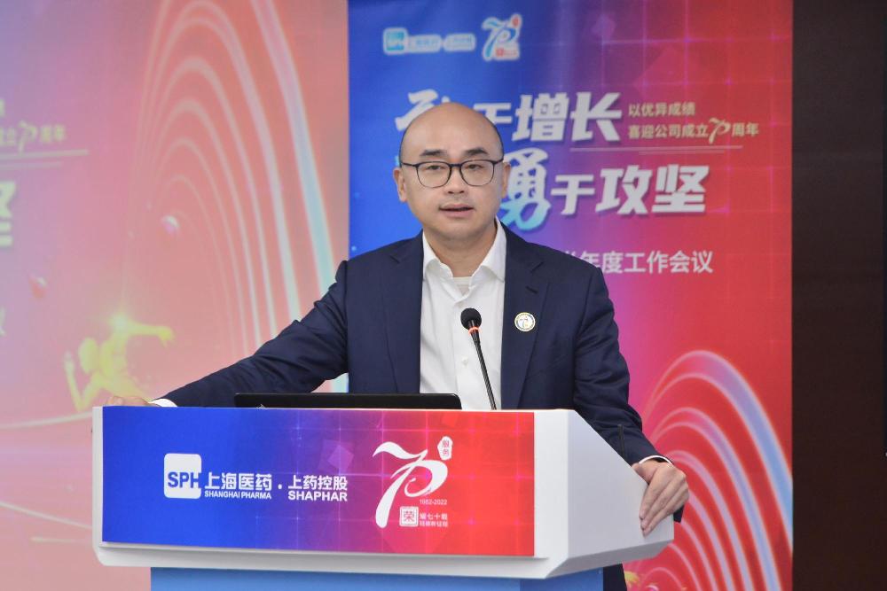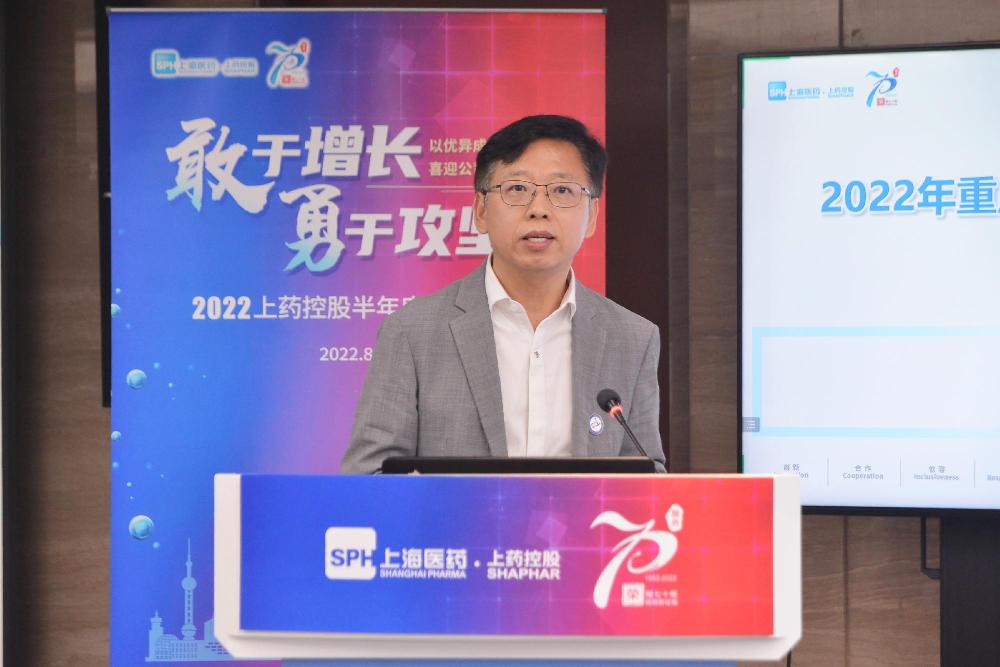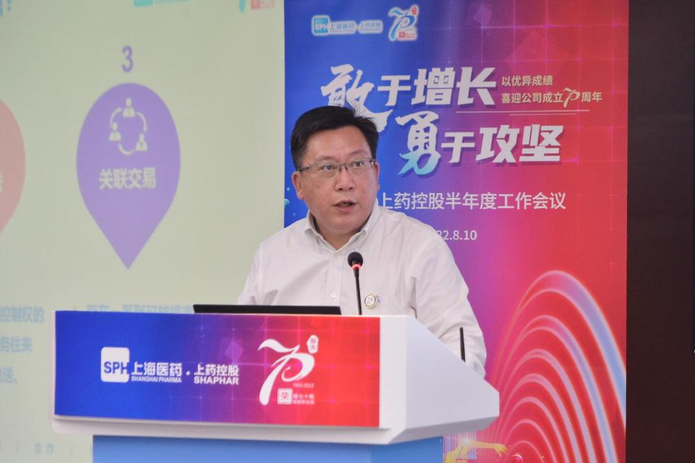 上藥控股戰(zhàn)略創(chuàng)新部總經(jīng)理黃文爭作《上半年度重點(diǎn)工作進(jìn)展》報(bào)告。