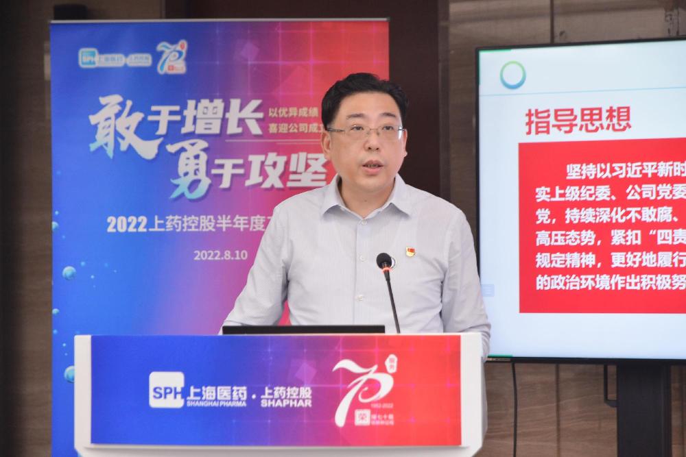 上藥控股紀(jì)委書記、工會(huì)主席王勇作紀(jì)委工作報(bào)告,對紀(jì)委上半年度開展的《黨風(fēng)廉政建設(shè)責(zé)任制》三級簽約、書記約談、新提任直管干部崗位廉潔教育等各項(xiàng)工作進(jìn)行了回顧,并對下階段紀(jì)委的重點(diǎn)工作進(jìn)行了布置。下階段,上藥控股紀(jì)委將繼續(xù)全面落實(shí)上級紀(jì)委、公司黨委的工作部署,重點(diǎn)推進(jìn)“制度+科技”項(xiàng)目實(shí)施、開展對落實(shí)“八項(xiàng)規(guī)定”精神及履職待遇業(yè)務(wù)支出執(zhí)行情況的專項(xiàng)檢查、加強(qiáng)對重大建設(shè)和改造項(xiàng)目實(shí)施前的廉政教育等各項(xiàng)工作,做到防微杜漸、警鐘長鳴,有效推動(dòng)各級企業(yè)提升廉潔風(fēng)險(xiǎn)防控能力,為公司持續(xù)營造風(fēng)清氣正的政治環(huán)境作出積極努力。