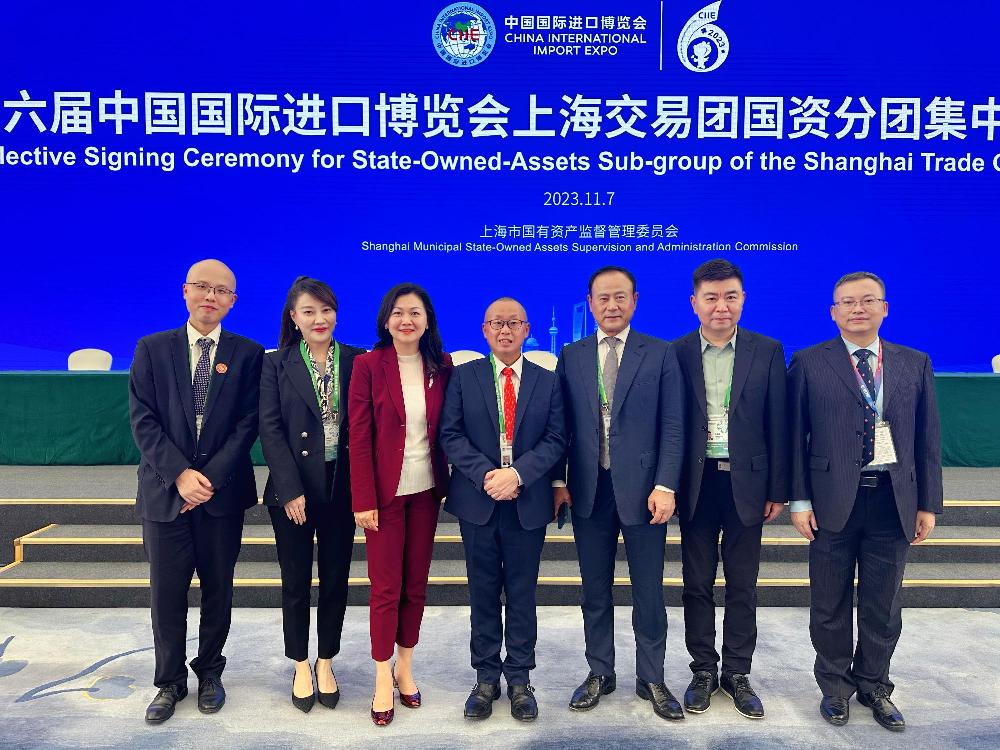 2023年11月7日,中國(guó),上海 –上海醫(yī)藥連續(xù)第六年亮相進(jìn)博會(huì)上海交易團(tuán)國(guó)資分團(tuán)簽約現(xiàn)場(chǎng),再次作為交易團(tuán)成員參與集中簽約儀式。出席本次集中簽約的領(lǐng)導(dǎo)有上海市副市長(zhǎng)陳杰,上海市政府副秘書長(zhǎng)莊木弟,中國(guó)國(guó)際進(jìn)口博覽局副局長(zhǎng)劉福學(xué),上海市國(guó)資委黨委副書記、一級(jí)巡視員程巍等。上實(shí)集團(tuán)副總裁張芊,上藥控股副總經(jīng)理宋潞潞作為簽約項(xiàng)目中方企業(yè)代表參加了本次簽約儀式。