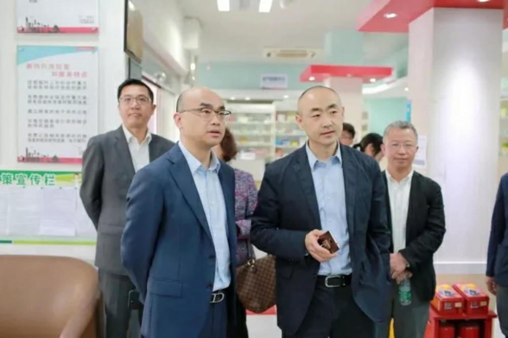 上海醫(yī)藥執(zhí)行董事、上藥控股總經(jīng)理、上藥康德樂(lè)董事長(zhǎng)李永忠(左三)參訪上藥康德樂(lè)大藥房廣州店